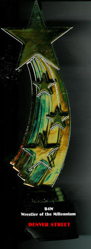 This item was given to Denver Street. B4W Board of Directors forgot to give this award to Denver, but TLD found it. Denver is a 9 time World Champion and one of the Original B4W Wrestlers and deserved this award